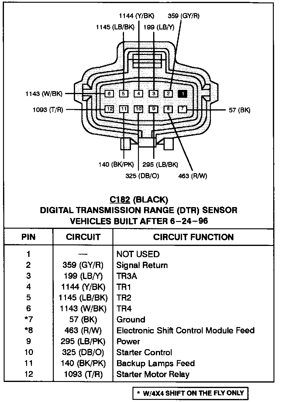 Digital Transmission Range Sensor (Vehicles Built After 6-24-96):