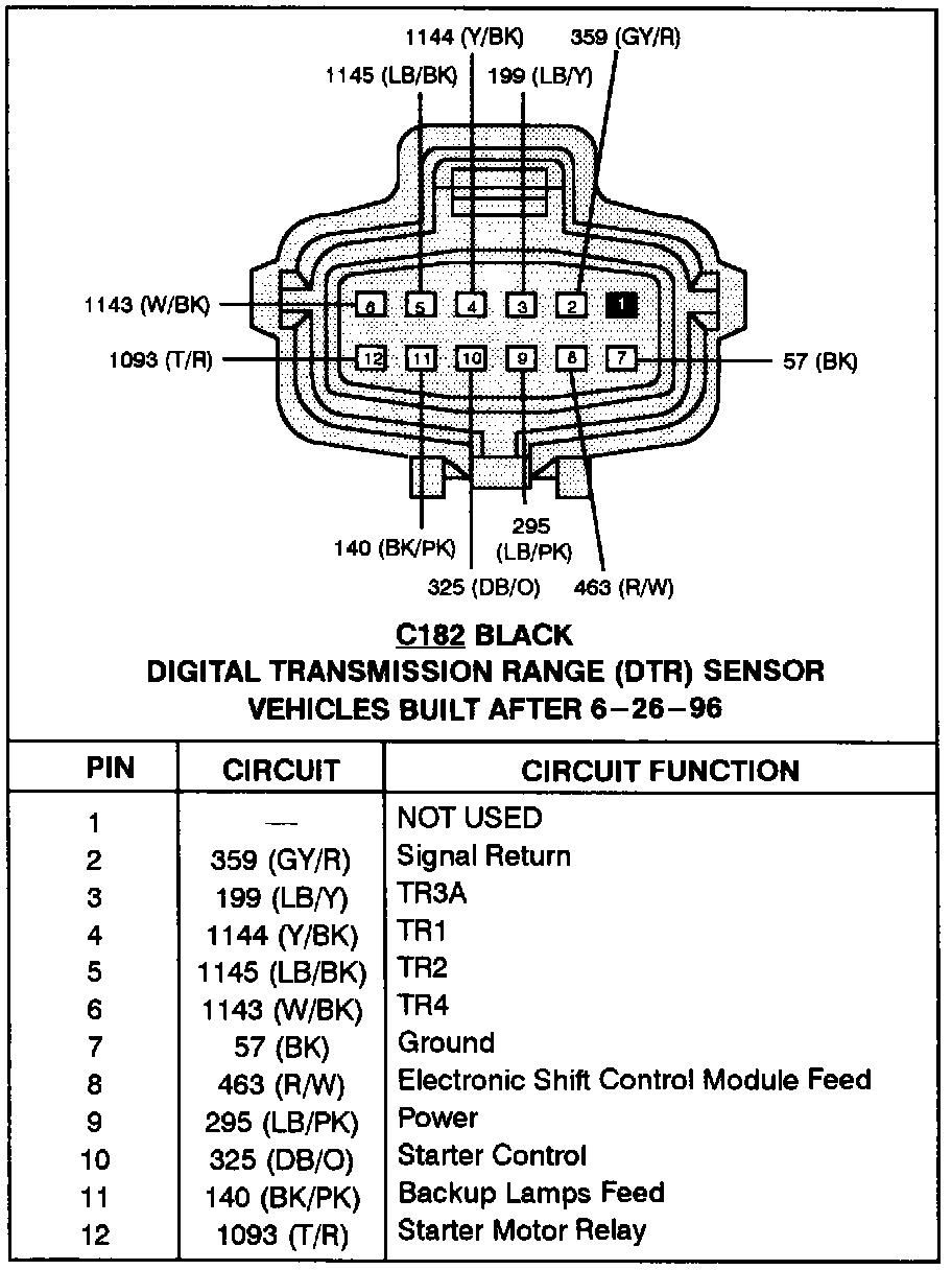 Digital Transmission Range Sensor (Vehicles Built After 6-26-96):