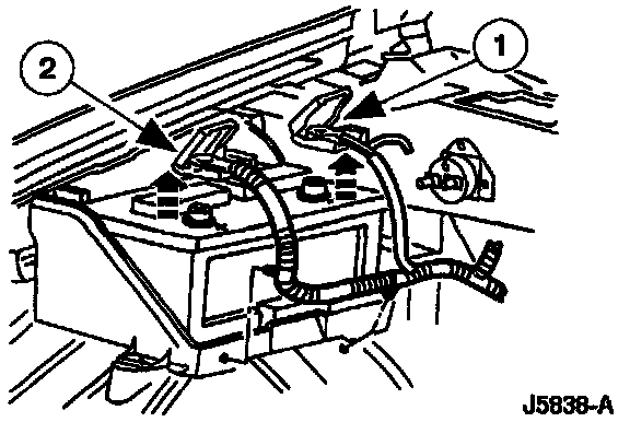 2 Remove the battery to starter relay cable and wait one minute for the backup power supply to be depleted.