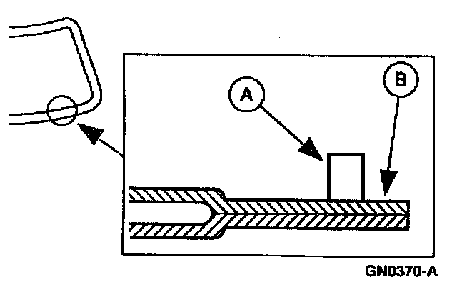 3. Apply (A) 8 mm foam butyl (part of EOAZ-19562-A) or equivalent meeting Ford specification WSB-M2G234C to the (B) pinch weld.
