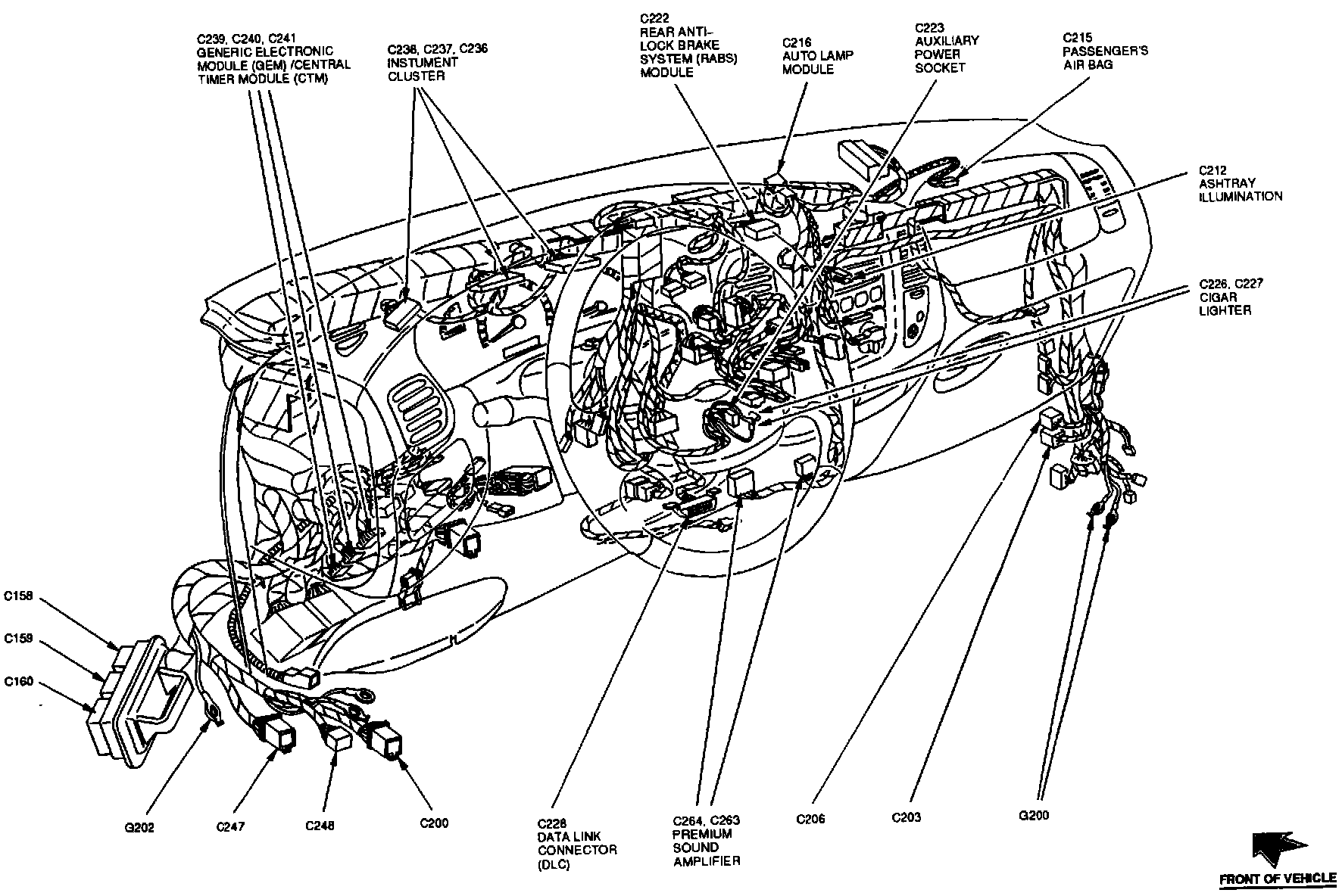 The Central Timer Module is located behind center of the instrument panel.
