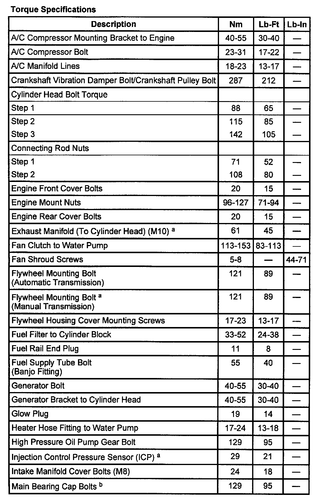 Torque Specifications: