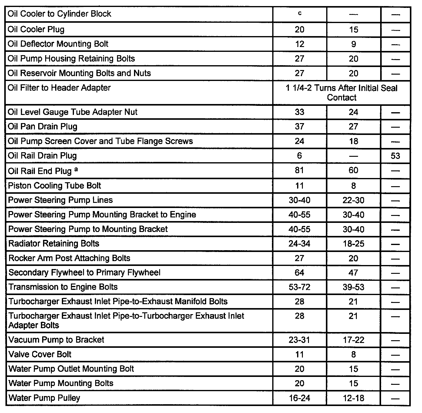General Torque Specifications