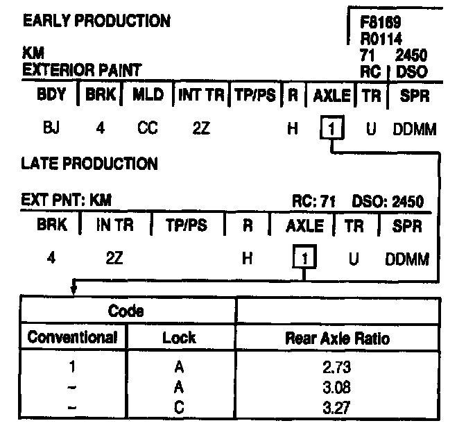 Axle Ratio Codes