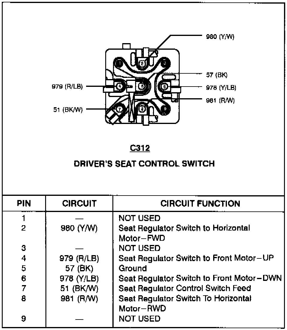 Driver's Seat Control Switch: