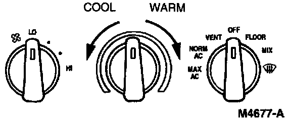 - Movement of the control knob from COOL to WARM causes a corresponding movement on the A/C air temperature control door and determines the temperature that the system will maintain.