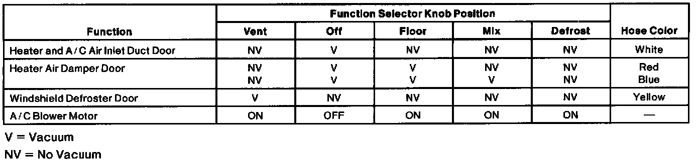 - The vacuum selector valve directs source vacuum to various vacuum control motors. Refer to the System Airflow Schematic and Vacuum Control Chart.