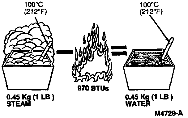 Conversely, the vapor will give off 970 BTUs in condensing back to water.