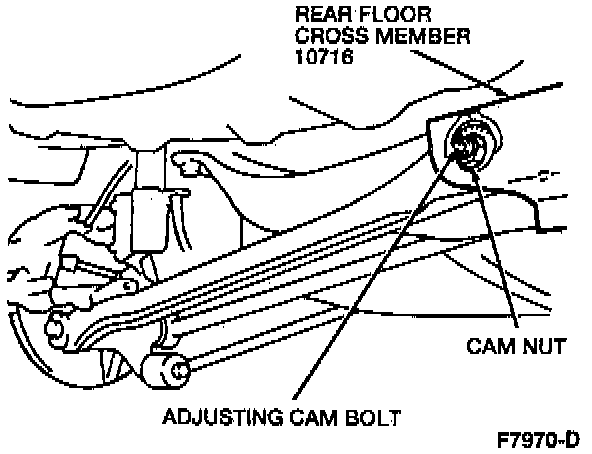 1. Loosen the cam nut on the rear floor cross member.