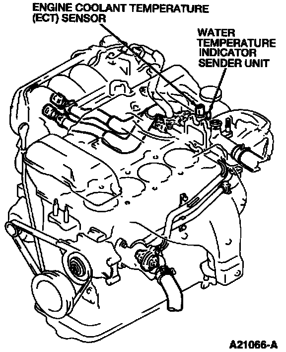 The Engine Coolant Temperature Sensor is located at the top LH front of the engine, near the distributor.