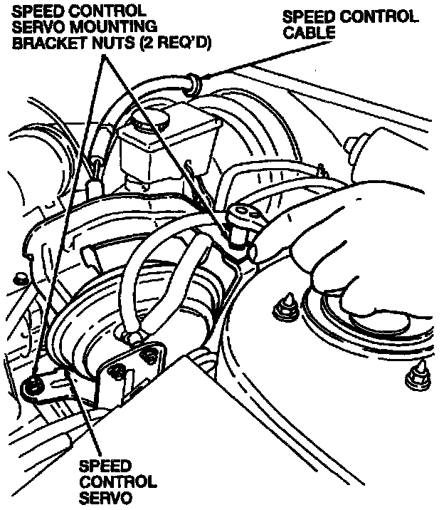 1. Position the speed control servo in the vehicle and install the two speed control servo nuts. Tighten the speed control servo nuts securely.