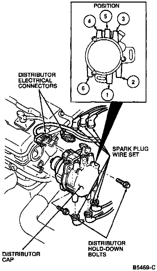 14. Remove the two distributor hold-down bolts and remove the distributor.