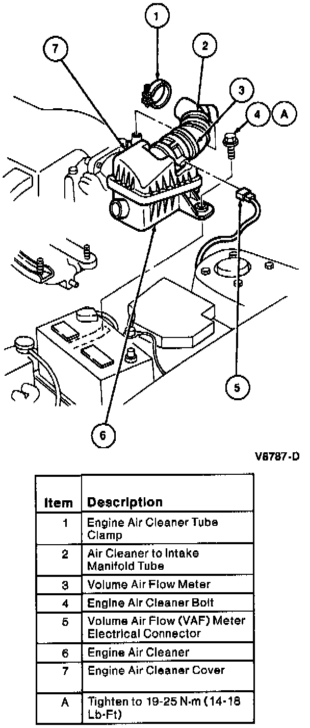 6. Disconnect the VAF meter electrical connector from the LH side of the engine air cleaner.