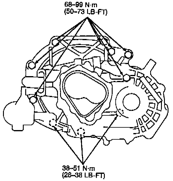 Transaxle Case-to-Flywheel Housing: 38-51 Nm (28-38 ft. lbs.)