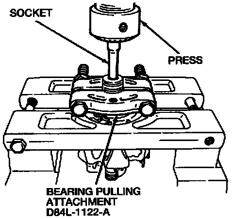 17. Use a suitable press and Bearing Pulling Attachment D84L-1122-A or equivalent to remove the generator rear bearing from the generator rotor.