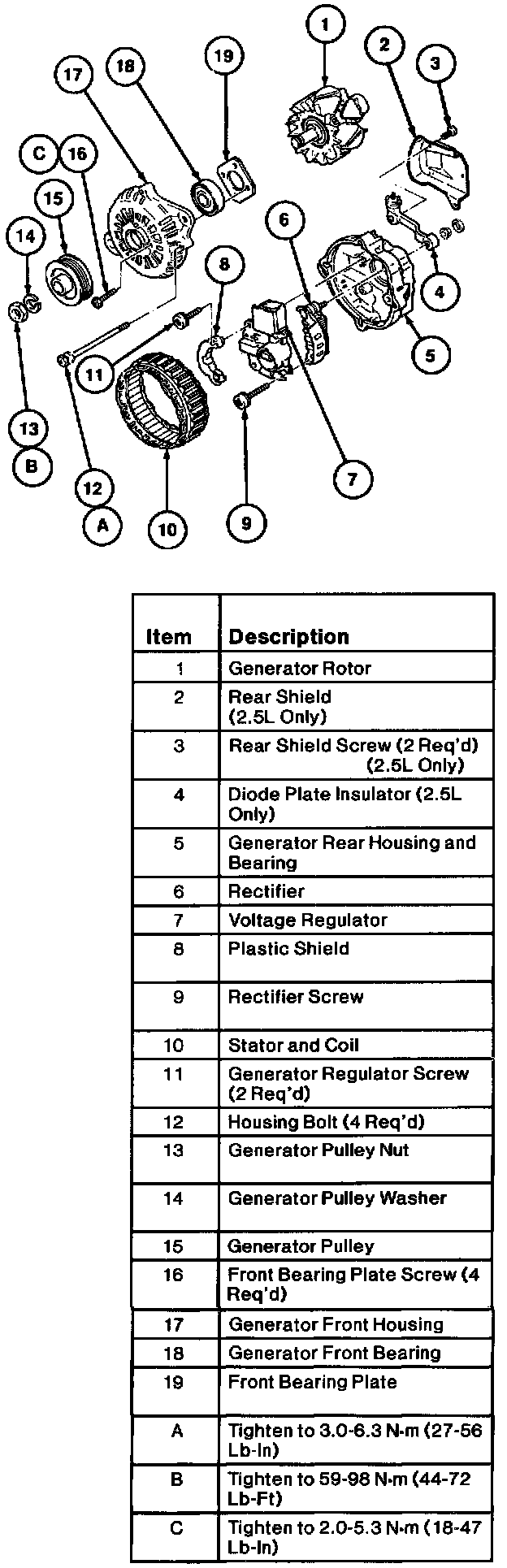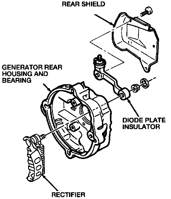 11. On this generator, remove the rear shield and the diode plate insulator from the generator rear housing and bearing.
