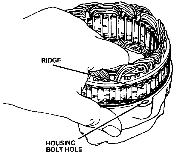 4. Position the stator and coil, with rectifier and voltage regulator attached, on the generator rear housing and bearing.