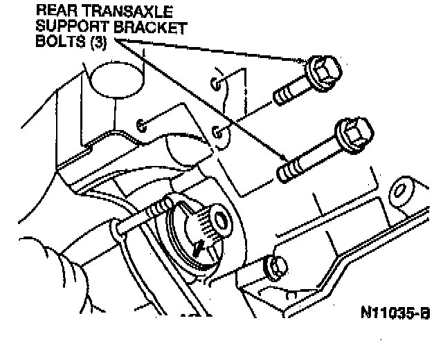 40. Remove the three rear Transaxle support bracket bolts.