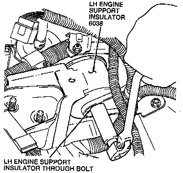 20. Remove the LH engine support insulator through bolt.