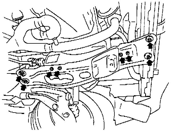 27. Remove the six cross member bolts.
