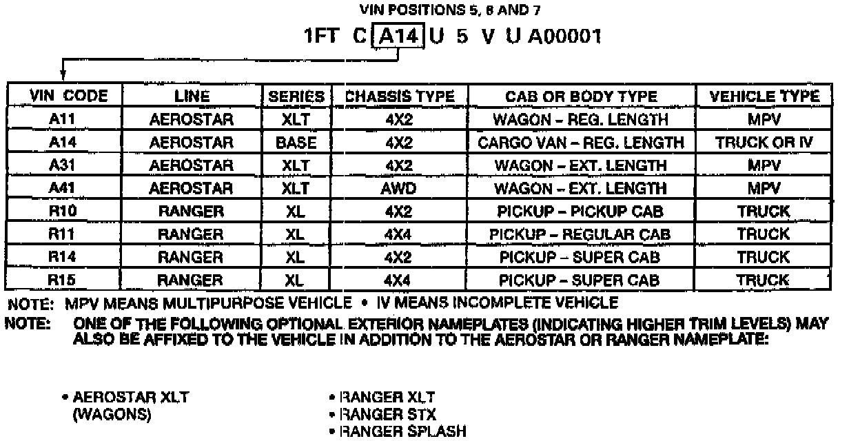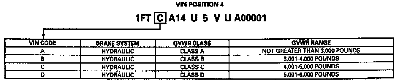 The fourth digit determines the gross vehicle weight rating (GVWR-Class) and brake system for Ford-completed trucks and MPVs. For incomplete vehicles, the fourth digit determines the brake system only.
