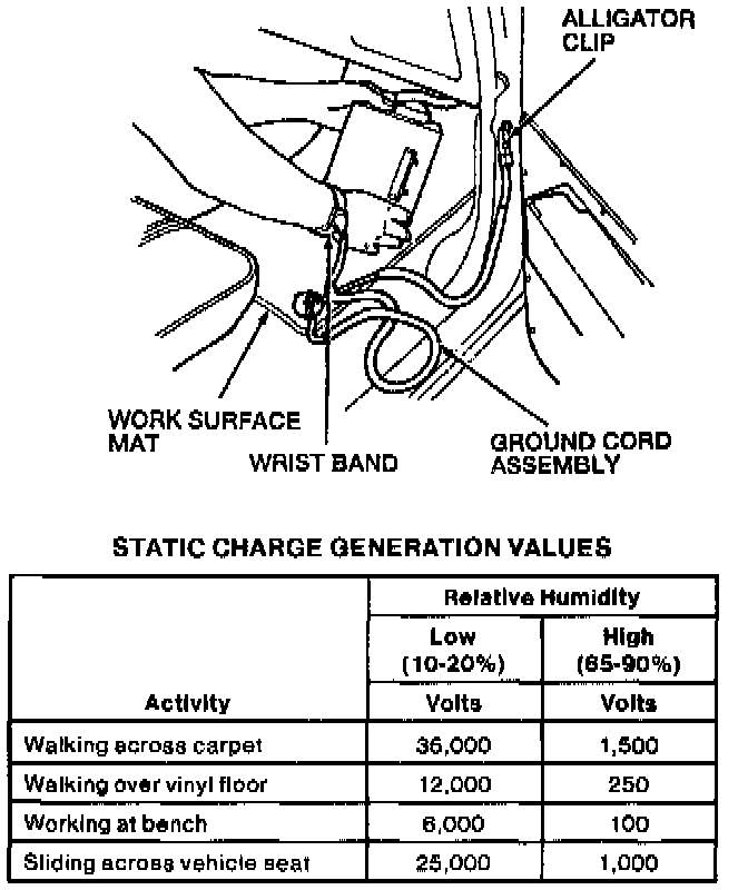 Electronic modules such as instrument clusters, powertrain controls and radios incorporate the latest technology. Some of the components used in these modules are sensitive to static electricity damage at voltage levels far below what the human body can sense. While a person cannot feet or hear the "snap" of a static discharge until the charge level is about 3000 volts, some of the electronic module components can be damaged or weakened by as little as 100 volts.