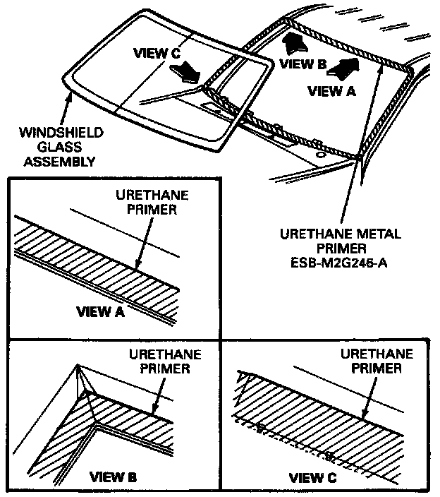 5. Apply Essex No. 4 urethane and position windshield glass on vehicle.