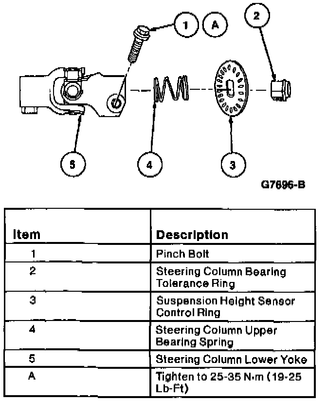 3. Install suspension height sensor control ring, steering column bearing tolerance ring, steering column upper bearing spring and steering column lower yoke to steering gear. Tighten pinch bolt to 22-28 Nm (17-20 ft. lbs.).