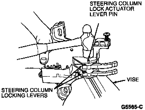 12. Support steering actuator housing in a vise and drive steering column lock actuator lever pin flush with steering actuator housing.
