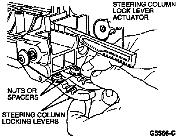 13. Place two nuts or spacers to hold steering column lock left hand lever and steering column locking lever (RH) away from steering actuator housing.
