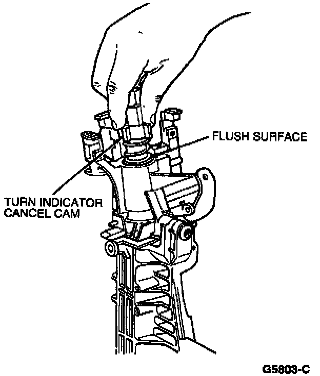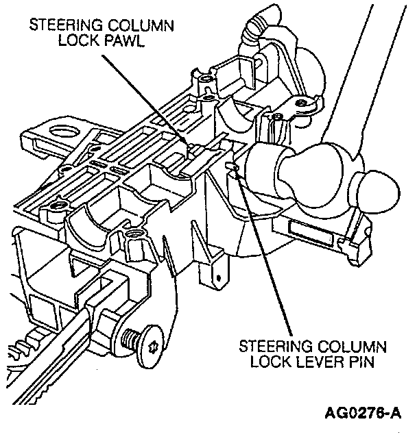 7. Position steering column lock pawl into steering actuator housing and install cam pivot pin with small hammer. Tap pin in until flush with steering actuator housing.
