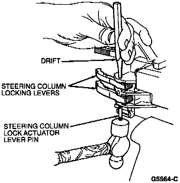 11. Install the other steering column locking lever spring and steering column lock left hand lever with steering column lock actuator lever pin. Tap steering column lock actuator lever pin into place while driving out drift.