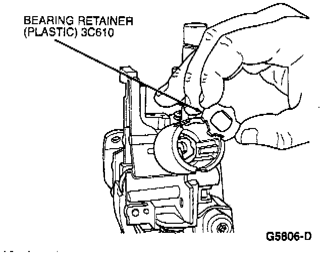 20. Install metal steering column lock housing bearing. Lubricate with Multi-Purpose Grease DOAZ-19584-AA or equivalent meeting Ford specification ESB-M1C93-B.