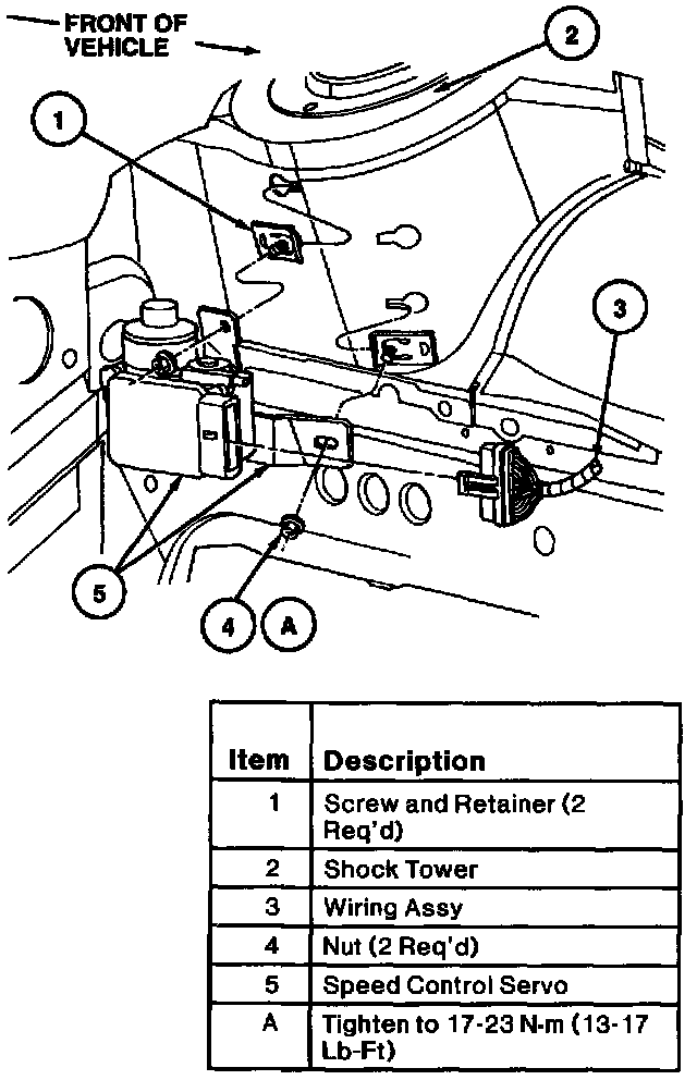 6. Position speed control actuator cable and speed control servo in vehicle. Tighten speed control servo nuts to 17-23 N.m (13-17 Lb-Ft).