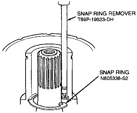 5. Insert the tip of the Snap Ring Remover T89P-19623-DH into one of the snap ring eyes.