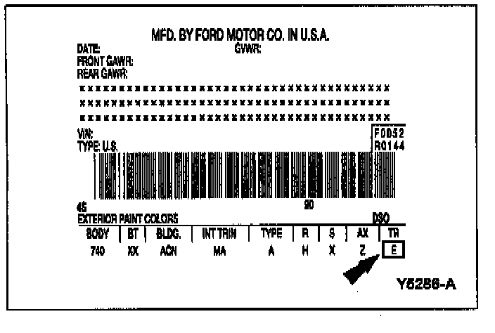The code within the "TR" space denotes the type of transmission installed.