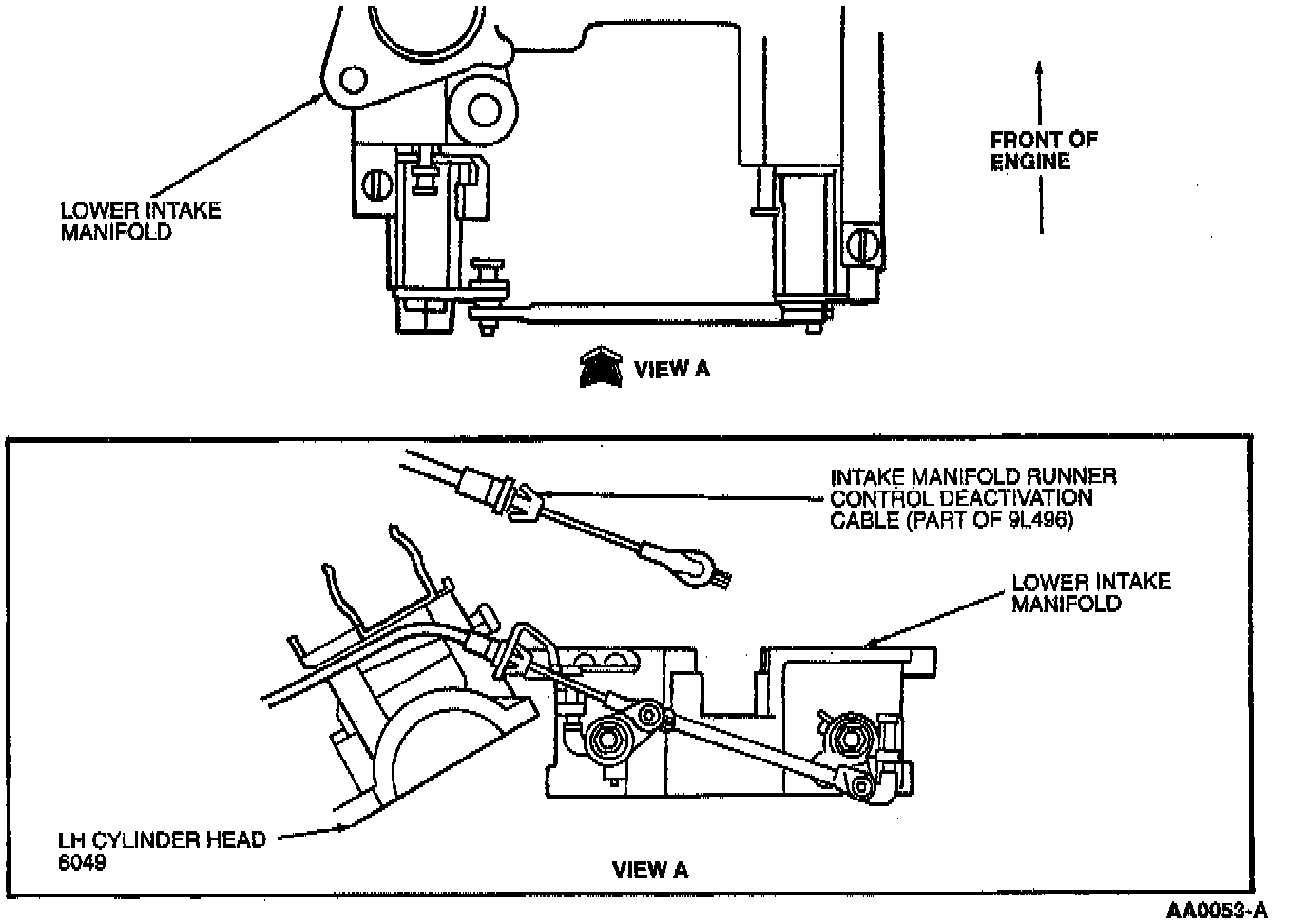 5. Disconnect intake manifold runner control deactivation cable from lower intake manifold (IMRC). Remove cable from bracket and position aside.