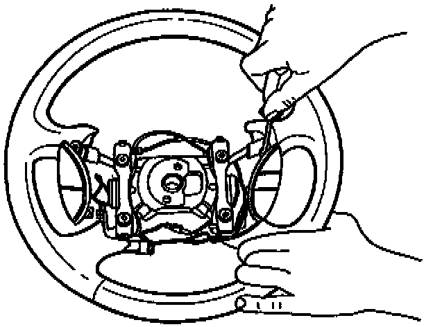 4. Position driver side air bag module on steering wheel and connect air bag sliding contact.