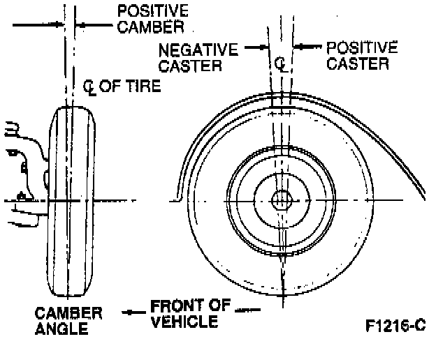 The caster is the forward or rearward tilt of the top of the front wheel spindle. If the top of the front wheel spindle tilts to the rear, caster is positive. For correct caster angles, refer to Specifications.