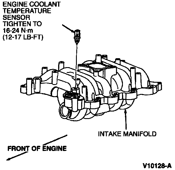 The Engine Coolant Temperature Sensor is located on the top RH front of the engine.