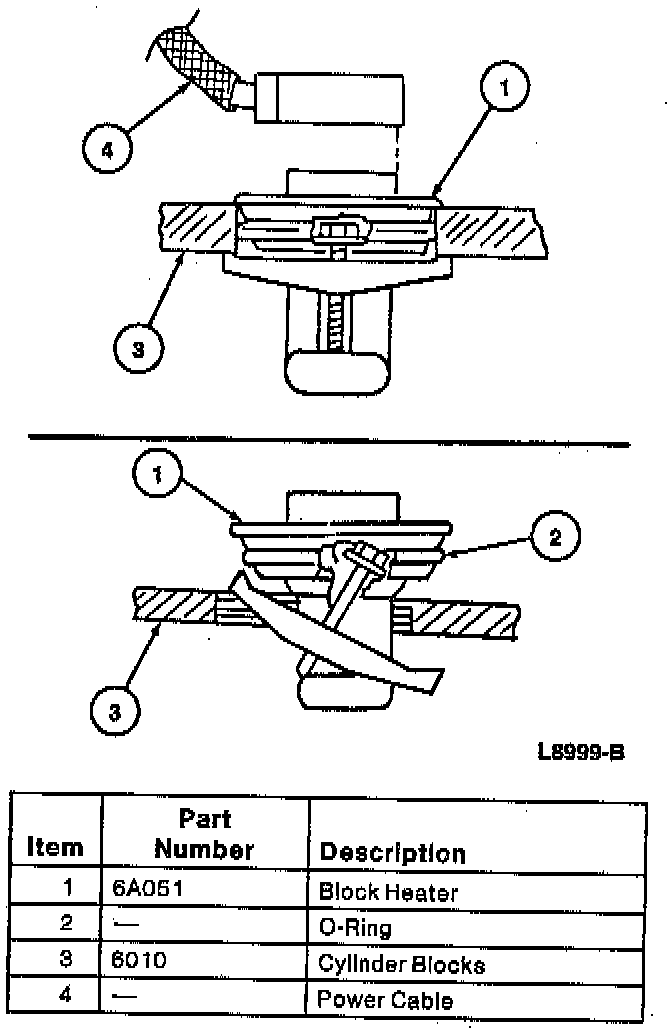 6. Install block heater power cable. Assure power cable is routed and secured away from rotating or hot components.