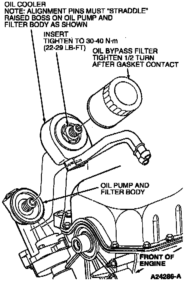 9. Remove oil bypass filter and oil cooler (if equipped).