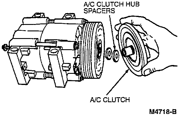 2. Pull A/C clutch and the A/C clutch hub spacers from A/C compressor shaft.