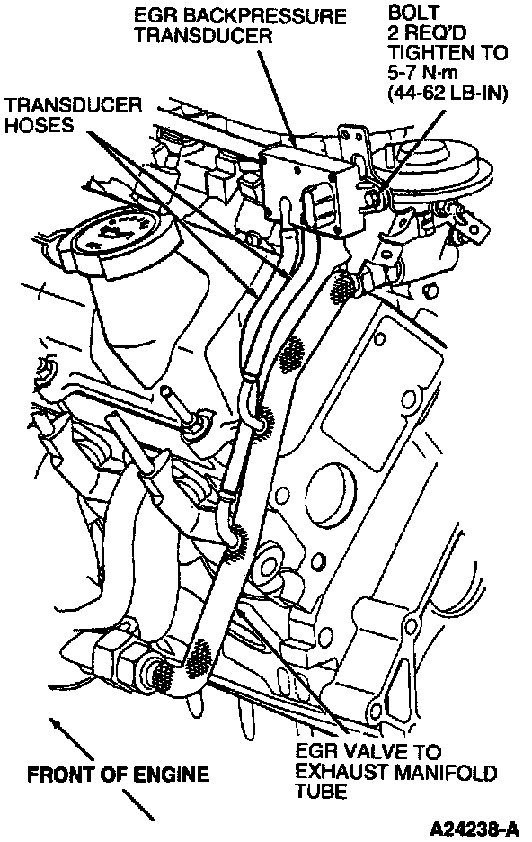 5. To install, reverse removal procedure. Tighten EGR backpressure transducer retaining nuts to 5-7 Nm (45-61 lb.in).