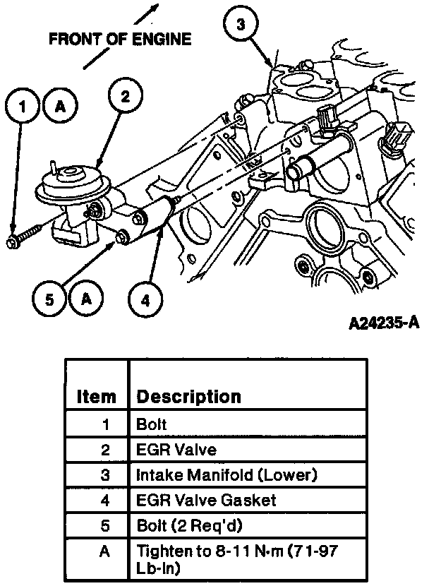 2. Tighten EGR valve retaining bolts to 8-11 Nm (71-97 lb in).