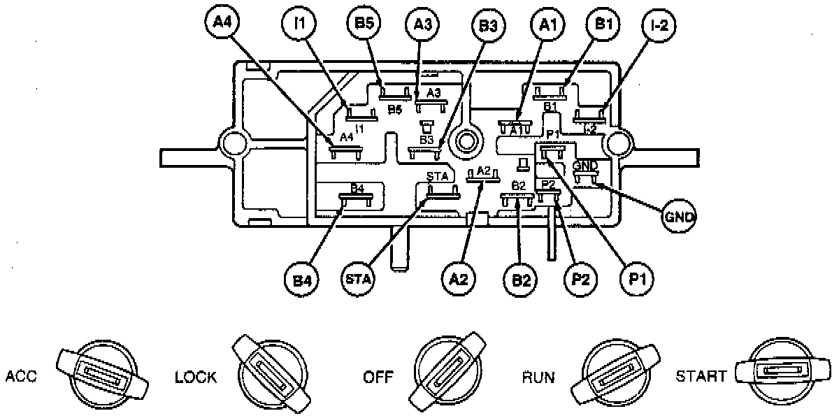 NOTE: For an engine won't crank condition, determine if the condition exists with the gearshift lever in both Park and Neutral positions before performing the ignition switch continuity tests. If the no-crank condition occurs in one shift lever position but not the other, a more probable cause is the TR sensor.