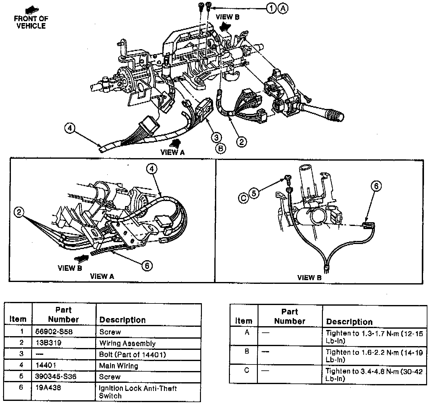 5. Remove two self-tapping screws that attach the multi-function switch to the steering column tube casting. Disengage multi-function switch from casting.