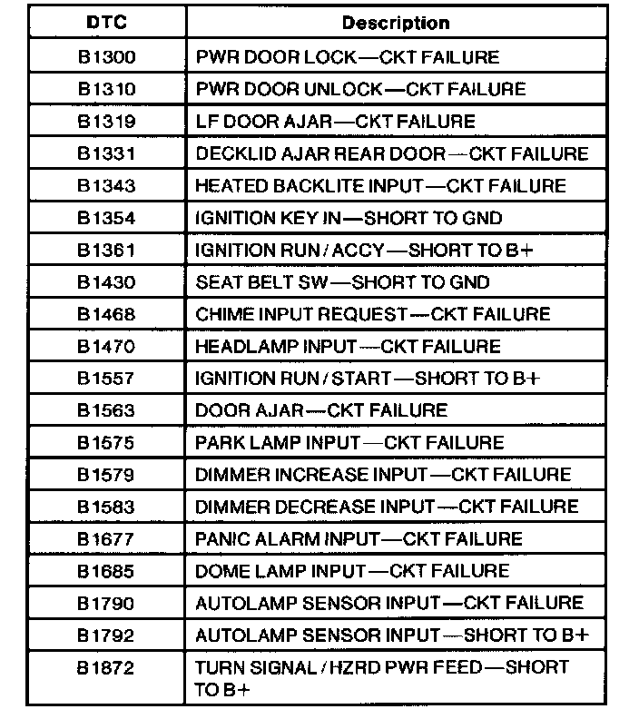 Diagnostic Trouble Code Descriptions