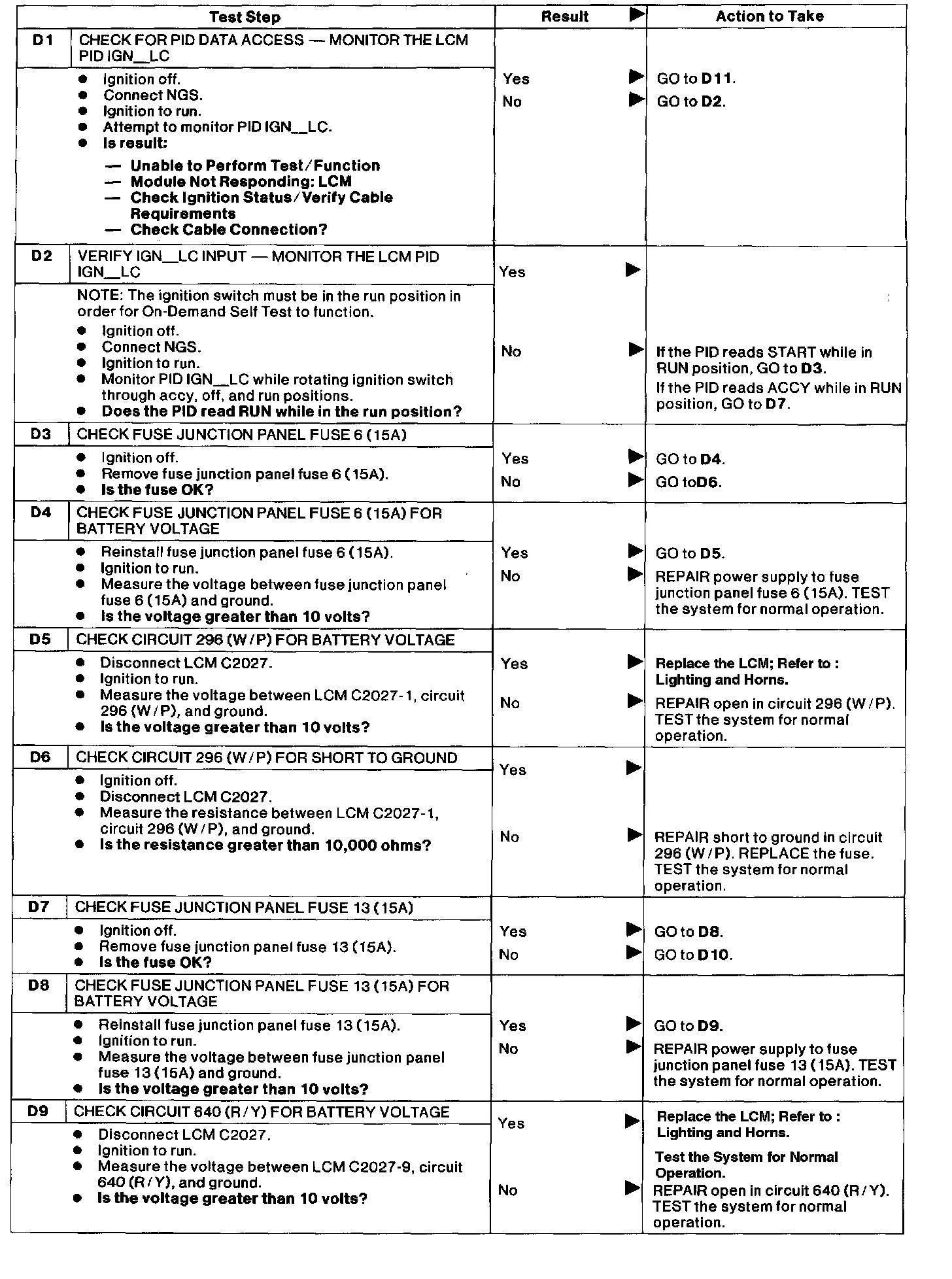 D: No Communication With Lighting Control Module