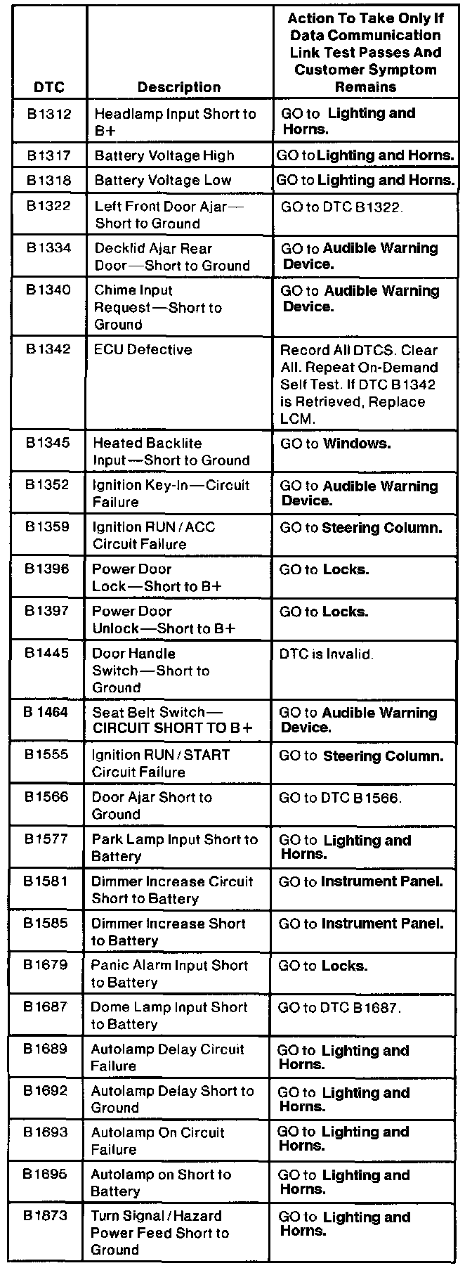 Lighting Control Module Diagnostic Trouble Code (DTC) Index